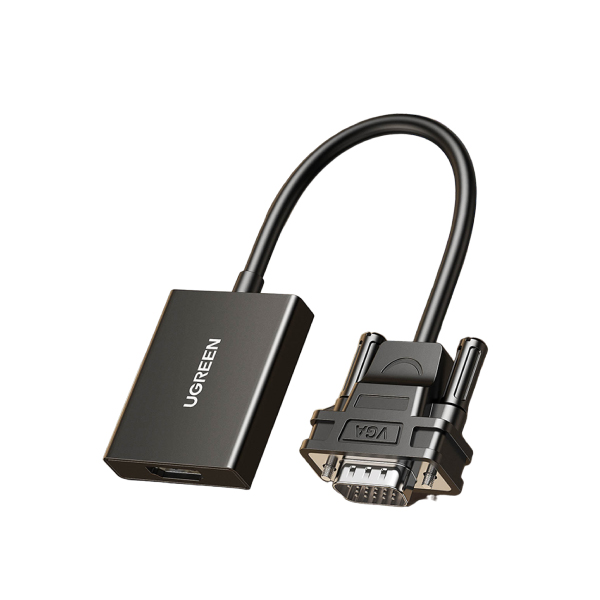 Cáp chuyển VGA đực sang Cổng HDMI Cái Ugreen 50945 là phụ kiện chính hãng Ugreen giúp bạn kết nối PC, Laptop, và các thiết bị máy chủ có cổng xuất hình ảnh VGA kết nối với các thiết bị trình chiếu cổng HDMI hỗ trợ độ phân giải Full HD và tích hợp cổng kết nối âm thanh. Giải pháp hoàn hảo cho các nhu cầu kết nối tại văn phòng, trường học và các nhu cầu cá nhân khác.